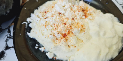 U deblju šerpu sipati mleko i vodu /može pola pola i malo posoliti. Kad provri, izmrviti sir. Ostaviti da i on provri, pa dodati kajmak.
