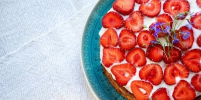 Tortu premažite šlagom i ukrasite celim jagodama.