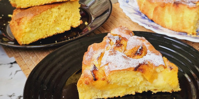 Odozgo nabacati kriške oljuštenih breskvi i staviti u fritezu. Uključiti na 180 stepeni 15 minuta.
