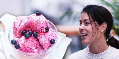 Banane oljuštite i isecite na manje komade. Jagode i borovnice operite i sve zajedno ubacite u blender. Izmiksajte par sekundi dok ne dobijete kompaktnu masu. Ukoliko nemate blender poslužiće vam i mikser, koji ćete uključiti na najjaču brzinu, ali onda voće isecite na sitnije komade. Smesu za sladoled preručite u plastučne kalupe za sladoled ili posudu za led, stavite u zamrzivač da se zaledi i kada se potpuno stegne uživajte u zdravom sladoledu.