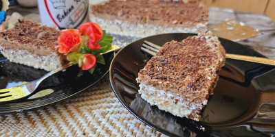 U pleh veličine 20 x 20 cm prvo staviti krem od piškota. Preko drugi od mlevene čokolade i na kraju krem od eurokrema. Svaki krema lepo razvući, a preko posuti čokoladne mrvice.