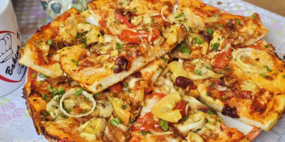 Premazati pleh uljem kao i testo pa ga prebaciti u pleh. Premazati kečapom i ajvarom.