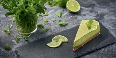 U međuvremenu, u velikoj činiji umutite jaja i šećer. Dodajte preostalo brašno i so, mutite dok se ne sjedine. Dodajte koricu limete, sok od limete i mleko. Po želji umutite i prehrambenu boju. Stavite cediljku preko male posude i sipajte mešavinu ruma u cediljku. Pritisnite poleđinom kašike da iscedite tečnost iz seckane nane i bacite listove. Umutite proceđenu tečnost u mešavinu jaja dok se dobro ne sjedini. Prelijte preko delimično pečenih kora. Pecite još 22 do 25 minuta. Potpuno ohladite na rešetki, oko 1 sat. Neposredno pre serviranja pospite dodatnim šećerom u prahu. Isecite na kocke i ukrasite celim listićima mente.