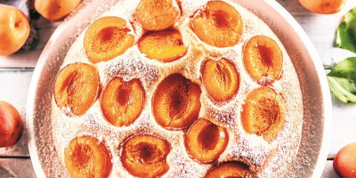 Kajsije operite i presecite na pola. Svaku polutku kajsija poređajte na polupečeno testo. Odozgo sipajte ostatak testa i vratite u rernu da se peče još pola sata, ali na temperaturi od 180 stepeni.