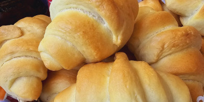 U vanglu sipati kvasac, mlako mleko, pavlaku i ulje i brašno i na kraju soli i umesiti glatko testo. Ostaviti da odstoji 10 minuta razviti u krug za pola cm iseći trouglovi i uviti.