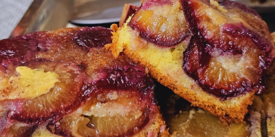 Ubaciti još šljiva, pa završiti testom. Izravnati i peći na 200, pa 180 stepeni oko 50 minuta.