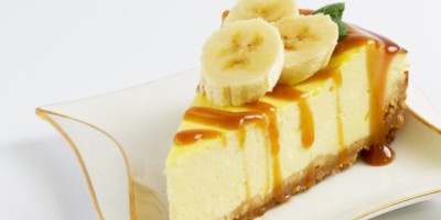 Prelijte karamel preko ohlađenog čizkejka i ravnomerno rasporedite. Ostavite u frižideru 30 minuta. Po površini čizkejka poređajte kriške banane i pospite seckanim kikirikijem. Pre serviranja prelijte karamel topingom.