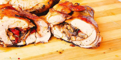 Peći na 220 stepeni pokriveno 30 minuta folijom, a zatim okrenuti i peći još 30 minuta otkriveno.