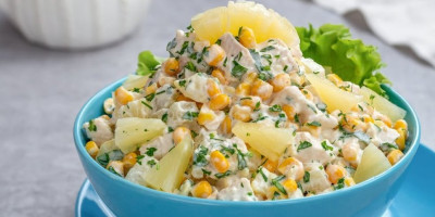 Slavska salata sa kukuruzom i piletinom upravo je takav recept - kremasta, hranljiva i veoma ukusna. Ova salata, bogata bojama i sastojcima, obogatiće svaki slavski sto i osvežiti atmosferu svojim laganim ukusom i primamljivim izgledom.