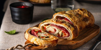 Pleh obložite papirom za pečenje, stavite rolat i pecite 45 minuta ili dok ne postane zlatno-smeđ. Ostavite rolat da se ohladi 10-15 minuta pre sečenja.