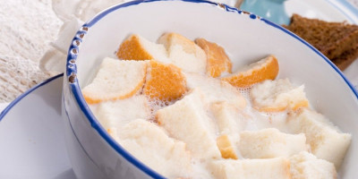 Hleb iseći na kockice i politi toplim mlekom, pa posuti šećerom.