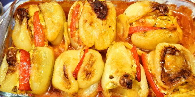 Mogu se zatvoriti listićima krompira. Izmešati kuvani paradajz i vodu dodati brašno, malo ulja soli i izmešati. Preliti papriku i peći u rerni na 220 stepeni 40 minuta.