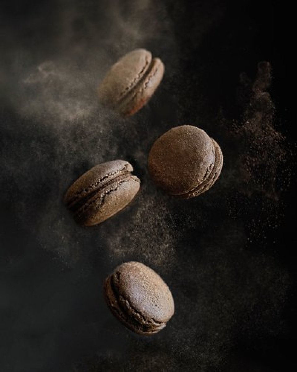 Lepo sjedinite, a onda pomešajte obe smese i lagano umešajte. Prebacite smesu u špric za kolače, pa istisnite krugove na pleh obložen pek papirom.