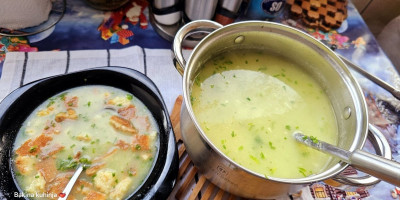 Sipati vodu 1,5 -.2 l i ostaviti da kuva 2 minuta. Griz staviti u manju činiju i sipati malo vode, pa izmešati i sipati u čorbicu.