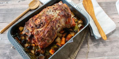 Stavite meso u pleh, dodajte 20 g putera i grančicu ruzmarina. Pokrijte folijom i pecite u prethodno zagrejanoj rerni na 160-170°C oko 2 sata.