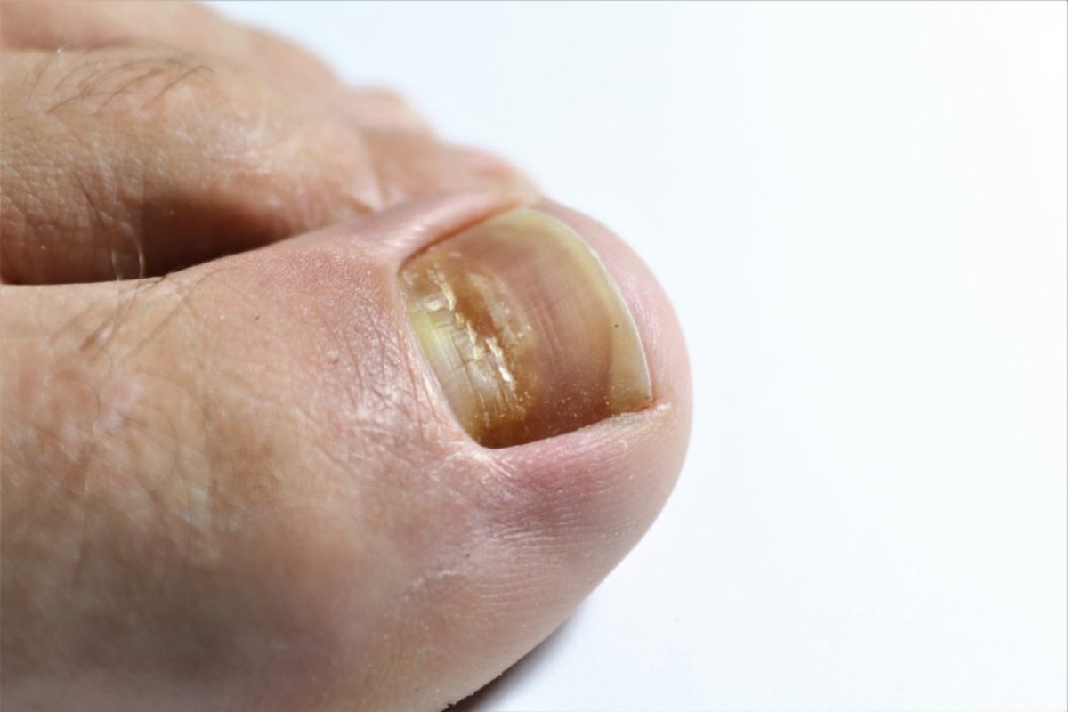 Nokti se odvajaju od kože ispod njih i postaju zamućeni sa belom, žutom ili zelenom bojom. Ovo može biti posledica povrede, infekcije, reakcije na lekove ili proizvode za nokte.