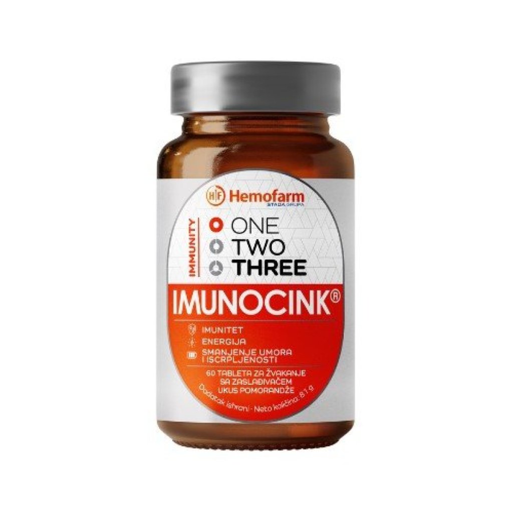 Optimalan odnos ova dva aktivna sastojka u preparatu One Two Three Imunocink obezbeđuje dnevnu dozu od 300 mg vitamina C i 10 mg cinka. Tablete za žvakanje prijatnog ukusa narandže, štite ćelije od oksidativnog stresa, smanjuju umor i iscrpljenost, podržavajući prirodnu odbranu organizma protiv virusa i prehlada.