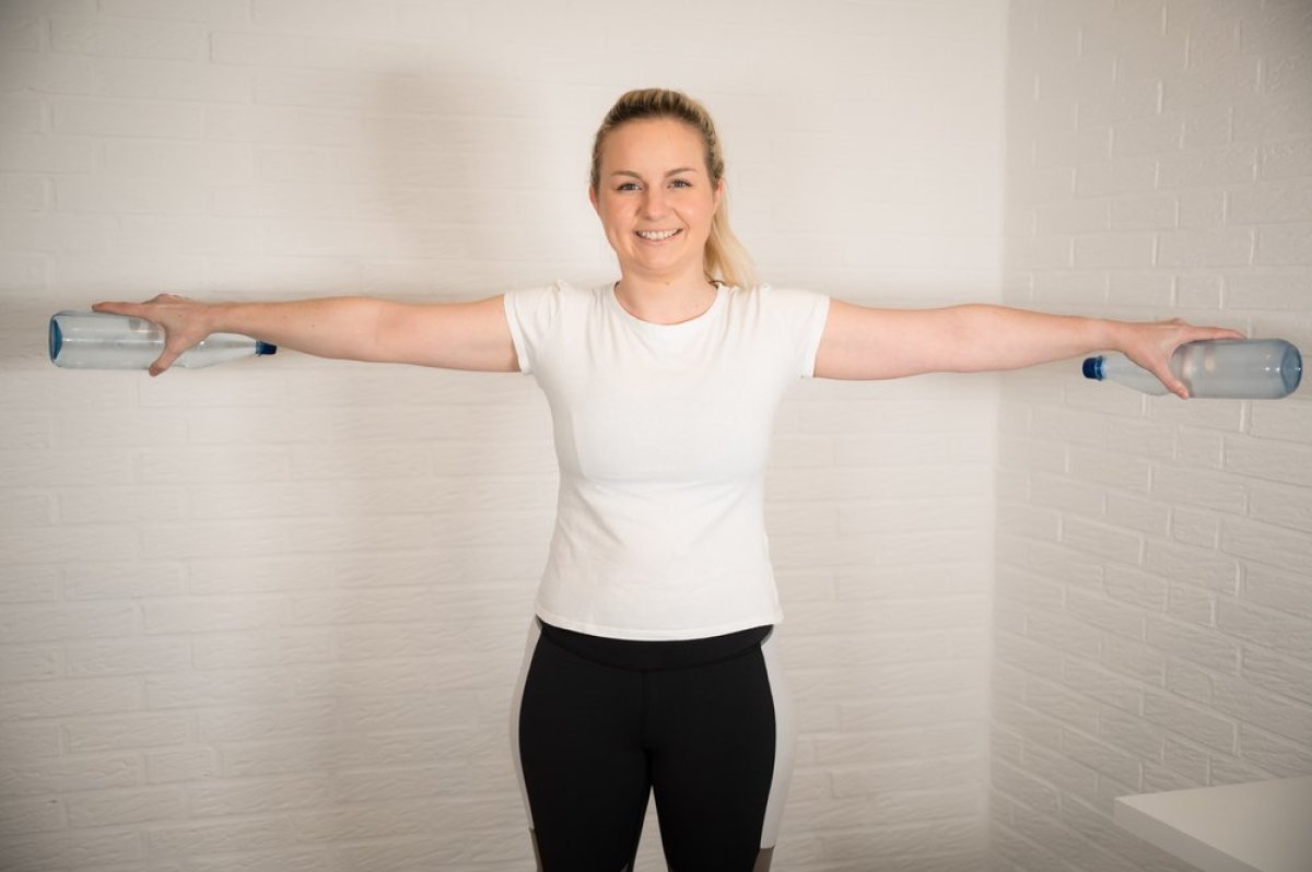 🔷Podizanje ruku sa laganim tegovima (ili flašama vode)