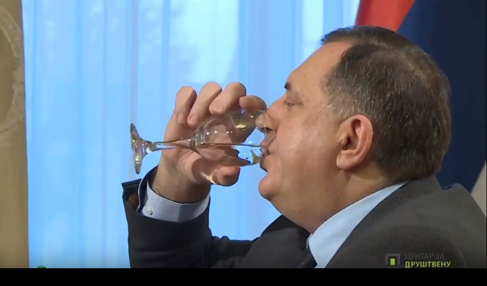 U najavi za ovaj intervju koja je objavljena na ovom kanalu, voditelj je upitao Dodika, pokazujući na čašu vode: