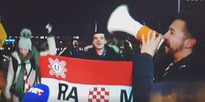 Dok je novinar govorio o utakmici i navijačima, u gro planu pojavila se zastava na kojoj se jasno vidi fašisticki simbol, a na zastavi je pisalo Rama, pa se pretpostavlja da je reč o navijačima iz tog mesta u BiH.