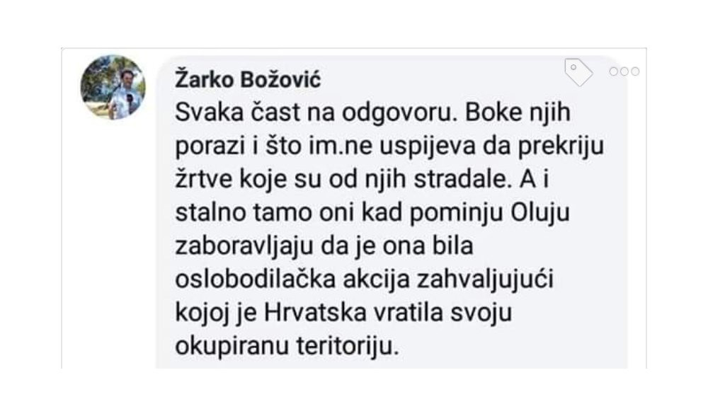 Božović je tako u jednom od komentara napisao da je "Oluja" oslobodilačka akcija zahvaljujući kojoj je Hrvatska vratila svoju okupiranu teritoriju.