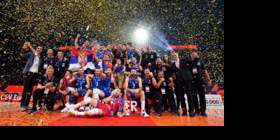 Odbojkaška reprezentacija Srbije postala je šampion Evrope, pošto je u finalu Evropskog prvenstva u Parizu pobedila Sloveniju posle preokreta 3:1 (19:25, 25:16, 25:18, 25:20).