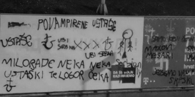 Na plakatima SNV-a ispisanim starim hrvatskim pismom koje su Hrvati koristili od 11. do 18. veka, a ponegde i posle i to od Slavonije i Istre do Dubrovnika, kojim su napisana i neka od najvažnijih tadašnjih dela katoličke baštine, nepoznati počinioci prebojili su ćirilična slova i napisali „Milorade, neka, neka, ustaški te logor čeka“, „Povampirene ustaše“ i „Ubij Srbina“.