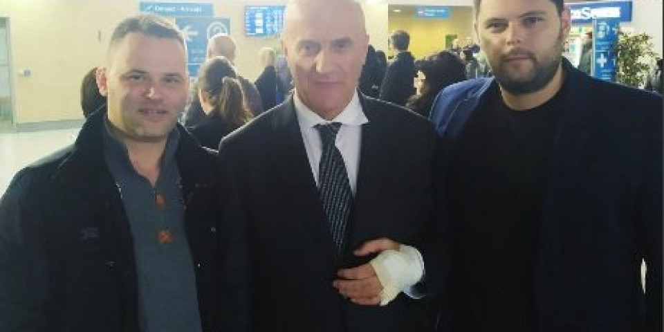 Davidović je stigao sa levom rukom u zavoju. Podsetimo, na njega je u Beogradu pre 10 dana izvršen snajperski napad dok se nalazio u društvu vladike Joanikija i tada je ranjen u ruku.