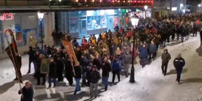 Okupljeni su u mirnom protestu uzvikivali "Milo, lopove"! Kolona je bila nepregledna, a Pljevljanima nisu smetali ni loši vremenski uslovi da izraze bunt protiv otimačine srpskih svetinja.