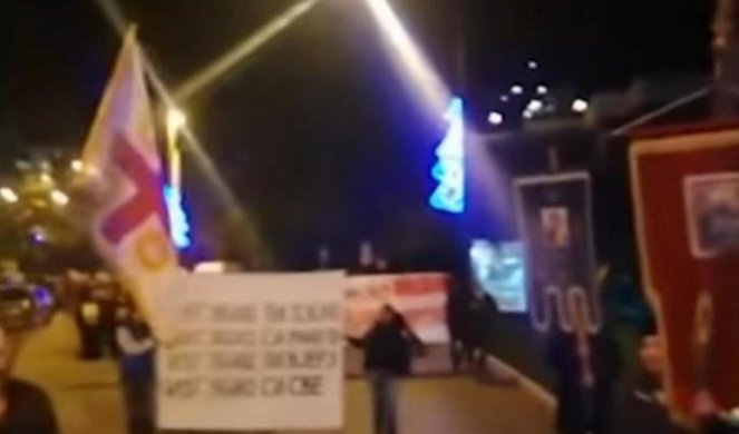 Okupljeni su pevali "Onamo 'namo" i verziju himne "Oj, svijetla majska zoro" sa stihovima - "Na Lovćenu Njegoš spava, najmudrija srpska glava".