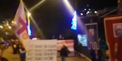"Izgubiš li ljubav, izgubio si mnogo, izgubiš li vjeru, izgubio si sve", piše na transparentu koji nose vernici.