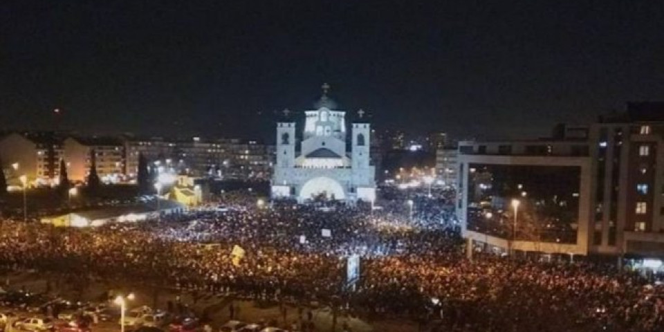 Hiljade građana okupilo se u Podgorica, a u odbranu svetinja krenuli sa sa krstom Svetog Vasilija Ostroškog.