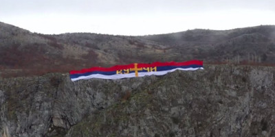U Crnoj Gori nema litija ali otpor naroda prema spornom Zakonu o slobodi veroispovesti ne jenjava. Kuči, pleme Marka Miljanova, jutros je ogromnom trobojkom pozdravilo Crnu Goru, Evropu i svet.