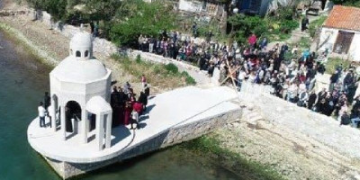 DRAMA U TIVTU, POLICIJA NA SVAKOM KORAKU! Vernici se okupili da brane krstionicu na Prevlaci, sumnjaju da će vlast krenuti u rušenje svetinje!