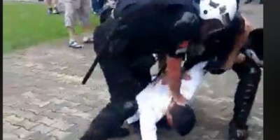 Dakle, nikakvog pružanja otpora i povoda da bude privođen, a kamoli bačen na pločnik, gažen oklopljenim kolenom na vrat, vezan lisicama i vučen po ulici kao najokoreliji zlikovac.