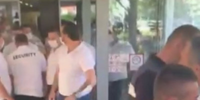 Ubrzo se pojavilo i privatno obezbjeđenje koje odbija da pokaže legitimacije i okreću leđa kameri.