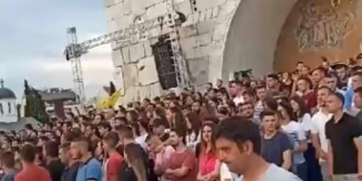 Molebanu u Podgorici su prisustvovali studenti okupljeni oko "Studentske inicijative za odbranu svetinja", koji su ispred hrama raširili transparent "Studenti ne daju svetinje"