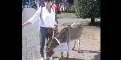 „Kao što je Kaligula uveo konja u senat, i pokazao da bilo ko može da bude izabran, ja mislim da i ovaj gospodin sa kravatom, može da bude izabran, jer je očigledno da u ovom gradu od strane DPS-a i satelita, sve može i svako može da bude izabran“, kazala je Bajković koja je sa magarcem stala ispred policijskog kordona.