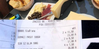 Jedan naš čitalac poslao nam je fotografiju fiskalnog računa sa plaže Žanjice u Herceg Novom od kojeg će vas zaboleti glava, iako vi nećete morati da ga platite.