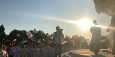 Zbog epidemioloških mera, ove godine je mnogo manji broj vernika u odnosu na proteklih 30 godina, pa su simbolično donete zastave 60 zemalja, dosadašnjih učesnica ovog susreta.