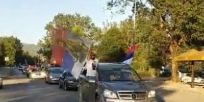 Uz zaglušujući sirene i skandiranje "Ne damo svetinje!" Takođe, uz trobojke istaknute su i državne zastave, kao i ratne sa bitke na Vučjem dolu.