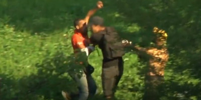 Kako prenosi portal "Kliks", dve osobe su povređene. Objavljen je i video-snimak incidenta na kom se vidi da su migranti koristili letve i noževe.