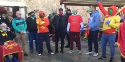 Grupa građana sa crnogorskim zastavama i obeležjima se okupila jutros u Budvi ispred ulaza u Stari grad da bi sprečila ambasadora Srbije Vladimira Božovića da položi venac na spomen ploču "srpskim oslobodiocima".