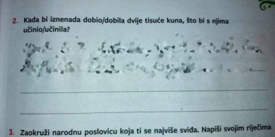 Naime, u domaćem zadatku bilo je postavljeno pitanje: "Kada bi iznenada dobio/dobila dve hiljade kuna (oko 260 evra, prim.aut), što bi s njima učinio/učinila?". Učenica je vrlo jasno odgovorila da bi kupila - tri jagnjeta!