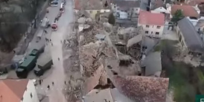 Kakva razorna sila je pogodila hrvatski grad, vidljivo je iz snimka načinjenog iz vazduha koji se pojavio na internetu. Gradonačelnik Petrinje Darinko Dumbović opisao je štetu od zemljotresa rečima da je „nestalo pola grada“.