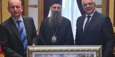 Njegova Svetost Patrijarh srpski g. Porfirije primio je u Patrijaršijskoj rezidenciji u Beogradu Andriju Mandića i Milana Kneževića, lidere Demokratskog fronta u Crnoj Gori