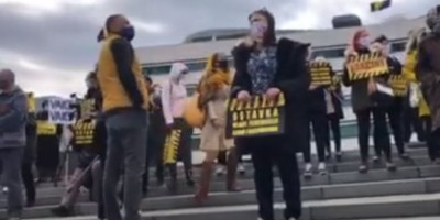 Protestna kolona automobila je sa Železničke stanice stigla ispred Zemaljskog muzeja, odakle zajedno sa građanima koji su ispred Muzeja stigli peške, dalje idu do državnog parlamenta.
