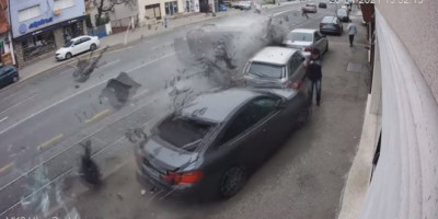 Delovi vozila su oštetili izlog preduzeća nakon čega je "audi" udario i "mazdu", "BMW", "audi A5" i "VW golfa". "Audi" se potom prevrnuo i okrenuo na krov i zaustavio na tramvajskim šinama, a delovi auta su oštetili još poklopac motora "VW golfa" i "tojotu jaris".