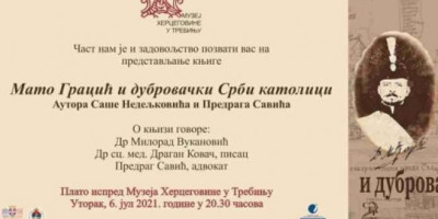 – Trebinje je najbliže mesto Dubrovniku u kojem možemo da slobodno održimo pormociju. Drugo prilikom promocije prve knjige u Dubrovniku ostala smo dužni odgovore na neka pitanja o Stosnkoj eparhiji, don Jerku Grškoviću, glagoljašima sa Krka… Treće, Trebinje je grad gde posebno cene knjigu, jedini mediteranski grad koji ne izlazi na more i na čijem svakom ćošku je nalazi po neko znamenje koje podseća velikog Dučića. I četvrti razlog u Trebinju stvara doktor medicine Dragan Kovač, koji će otkriti kakvu je inspiraciju dobio dok je čitao prvu knjigu o Gosparu Graciću i kako zahvaljući tome nastao jedan drugi, vrlo vredan roman. Na promociji u Trebinju će govori još jedan veliki intelektualac i nacionalni delatnik dr Miodrag ukanović, predsednik Srpskog nacionalnog vijeća u Dubrovniku i urednik časopisa „Poma“, koji se štampa na ćirilici u gradu pod Srćem.