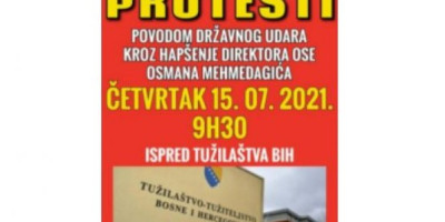Direktor Obaveštajno-bezbednosne agencije Osman Mehmedagić jutros u 8 sati predat je u nadležnost Tužilaštva Bosne i Hercegovine nakon što je ispitan u prostorijama Ministarstva unutrašnjih poslova Kantona Sarajevo, a ispred Tužilaštva BiH počeo je protest neformalne grupe građana